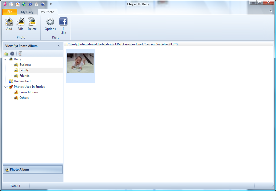 Chrysanth Diary has an integrated photo album to help you safeguard and organize your photos. In order to manage your photos, you will have to access My Photo section, as illustrated below: